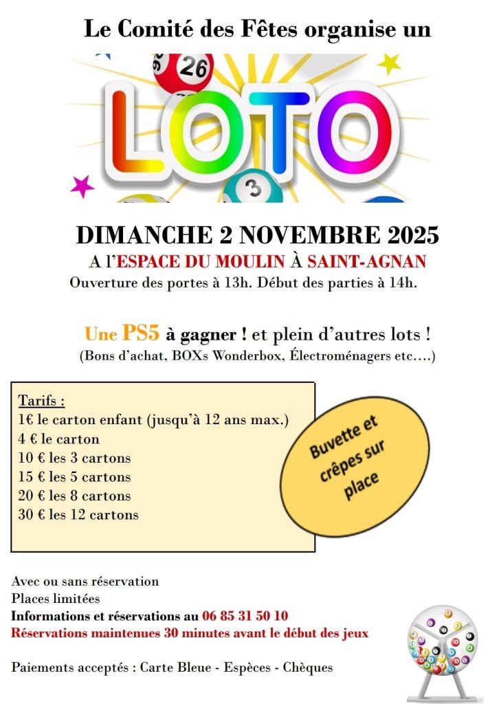 ACCUEIL » Agenda des événements » LOTO organisé par le comité des fêtes (COMPLET !!)