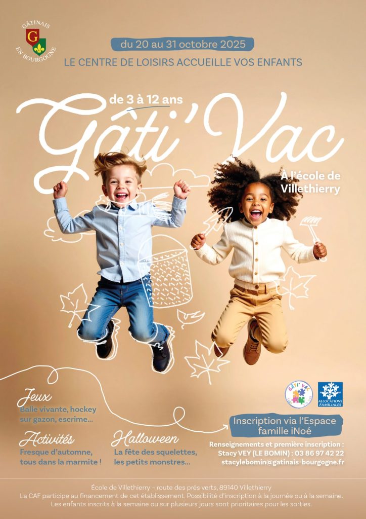 Pour la Toussaint, le centre de loisirs de la Communauté de communes du Gâtinais en Bourgogne ouvrira ses portes du 20 au 31 octobre 2025. Les activités se dérouleront à l’école de Villethierry.